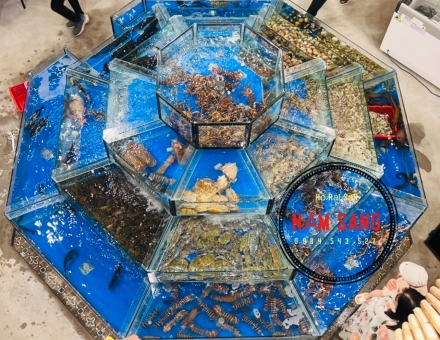 Hồ hải sản rất đẹp, rất phù hợp với nhà hàng sang trọng. Chất lượng tốt. Thi công lắp đặt lại nhanh chóng.